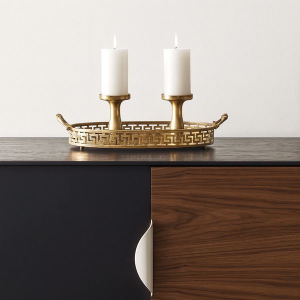 SPECIFICATIONS: • Gold Metal Candle Holder Tray, Size 52cmx26cmx14cm
