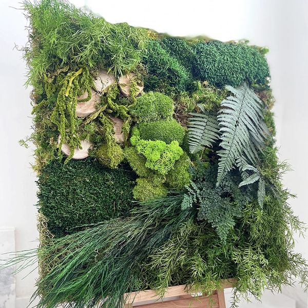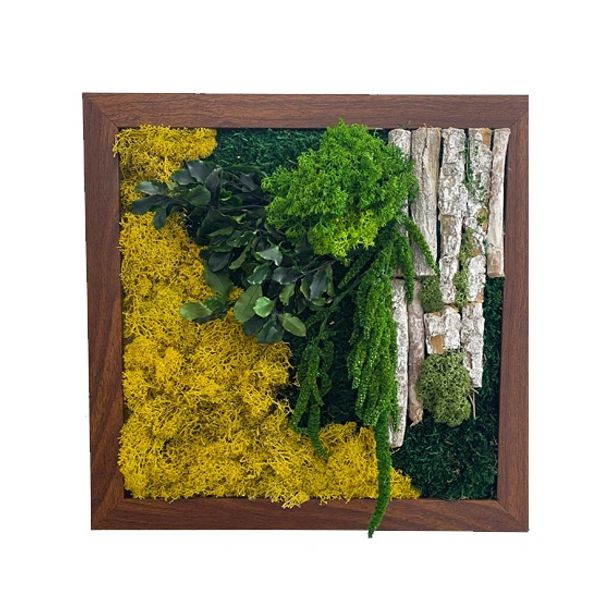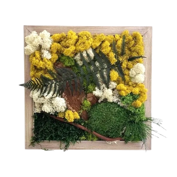DETAILS: • Handmade Wall Art • Wood Frame/Brown, Size: 45cmX45cm • Materials: Combination of ferns, moss and natural wood • Hanging hardware attached