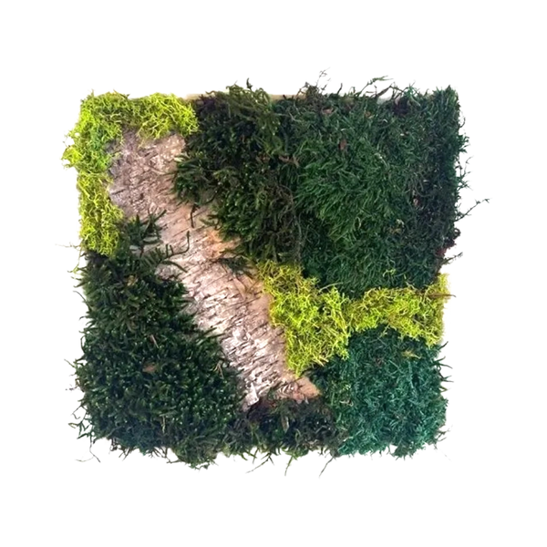 DETAILS: • Handmade Wall Art • Wood Background/Black, Size: 40cmX40cmX2cm • Materials: Combination of moss and natural tree bark • Hanging hardware attached